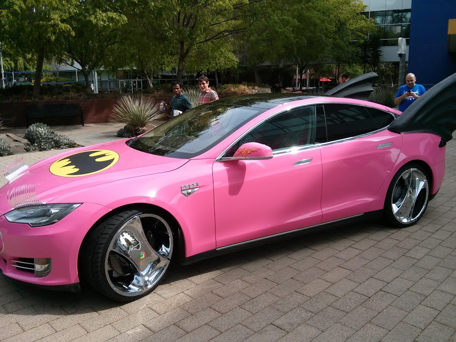 Esto que veis aquí es el coche de Sergey Brin, uno de los fundadores de Google, personalmente no se que es peor, si el color rosa chicle, las llantas con el logo de Chrome, el símbolo de batman..